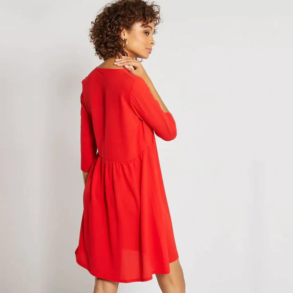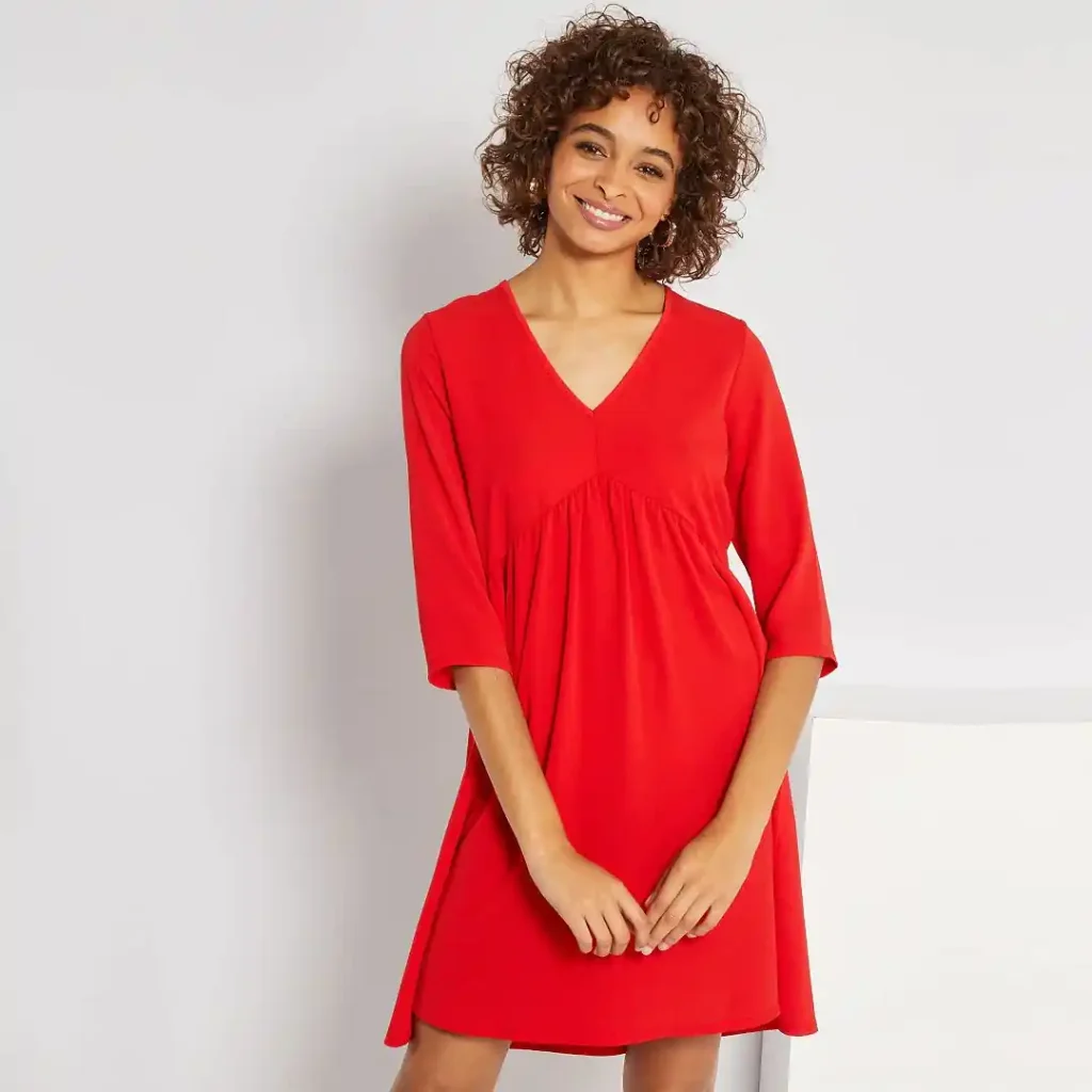 🟣 پیراهن کوتاه کرپ قرمز کیابی KIABI 👀