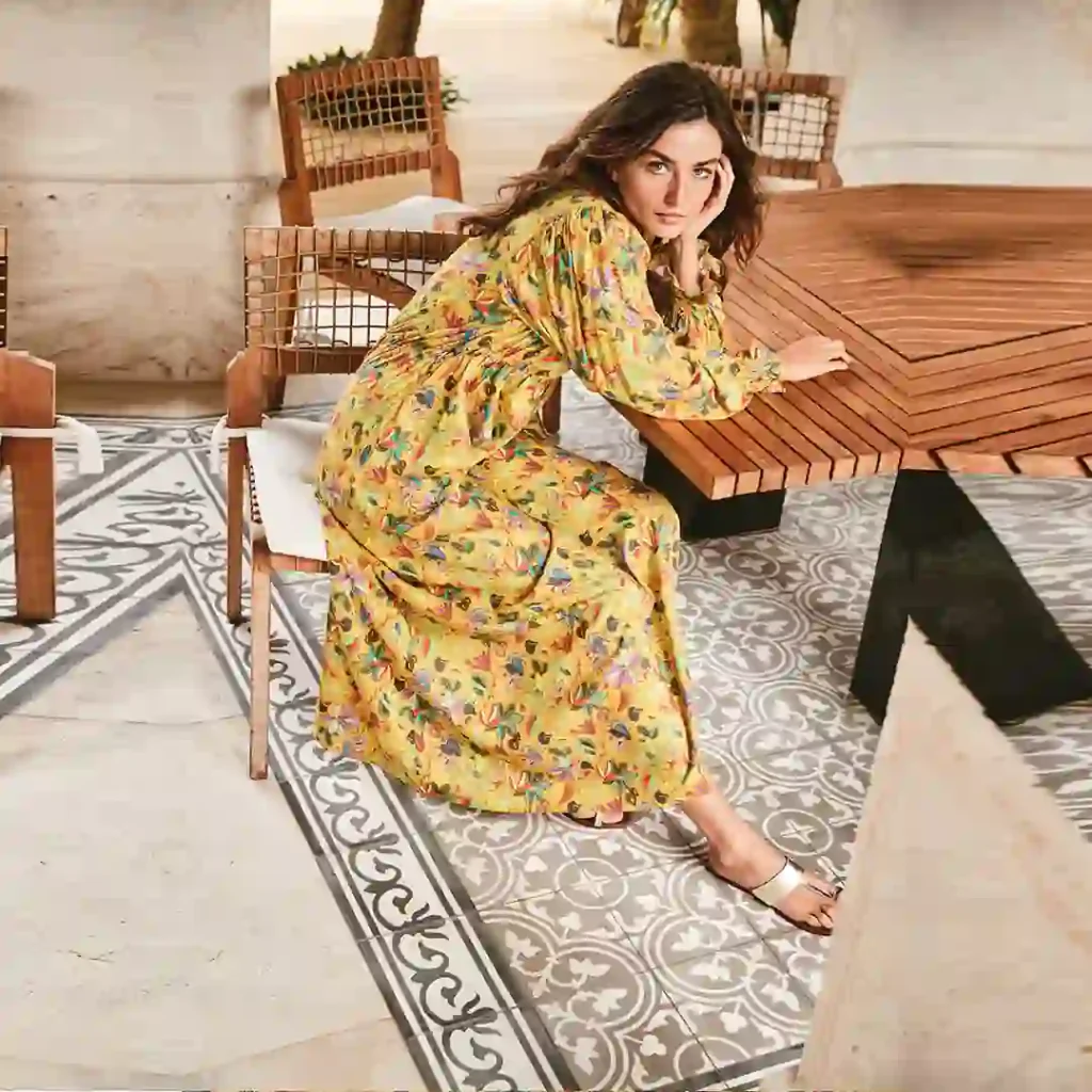 🟣 پیراهن آستین بلند گلدار خردلی نکست NEXT 👀