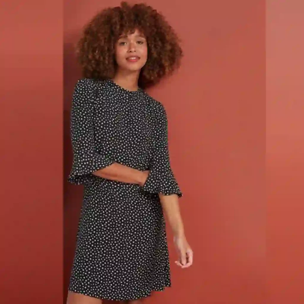 🟣 پیراهن مجلسی آستین کلوش خالدار مشکی نکست NEXT 👀