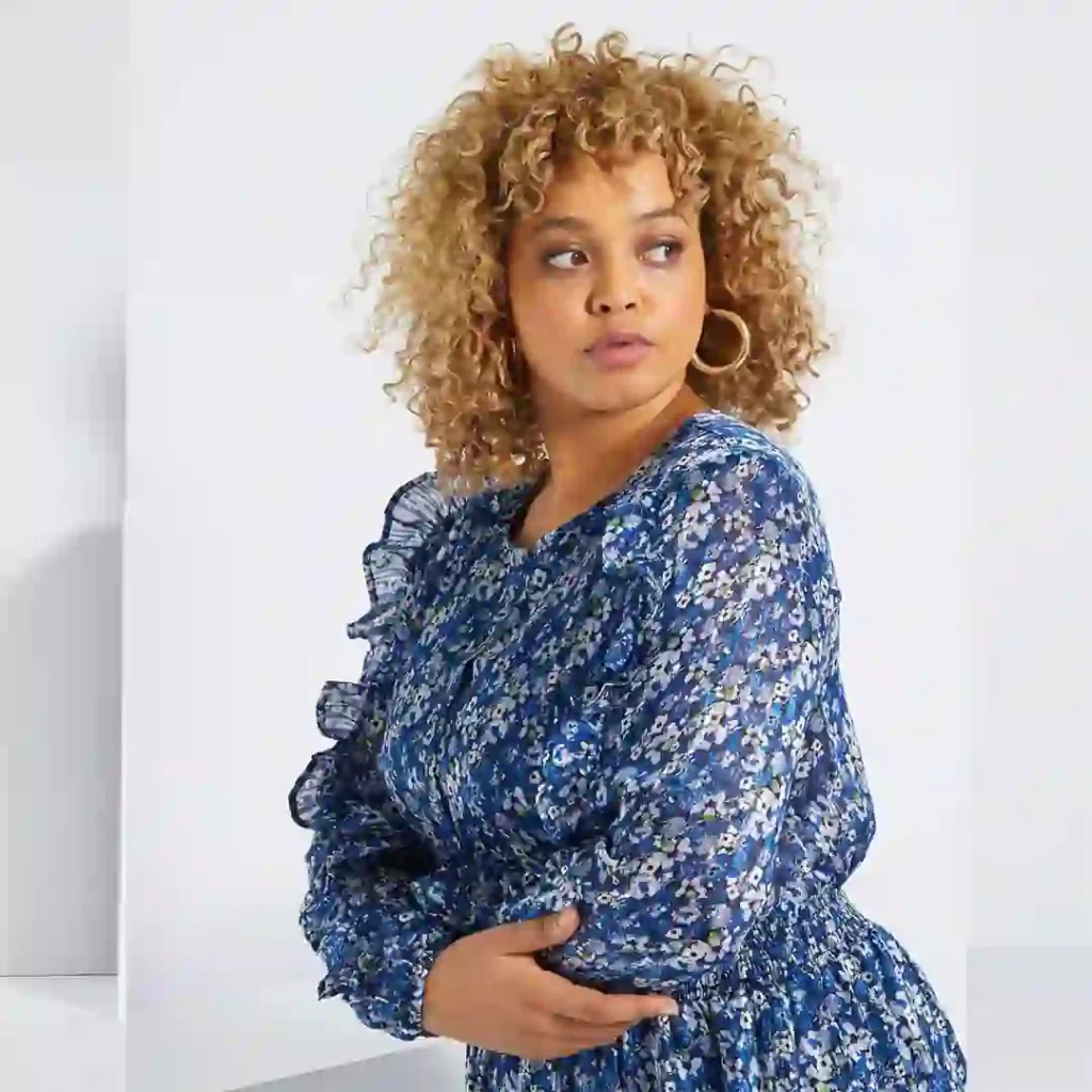 🟣 پیراهن مجلسی حریر آستردار گلدار آبی کیابی KIABI 👀