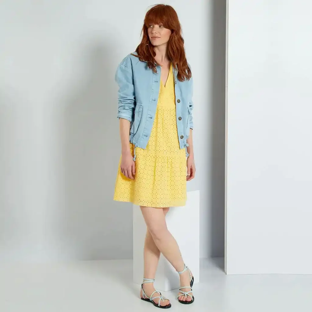 🟣 پیراهن مجلسی خامه دوزی زرد کیابی KIABI 👀