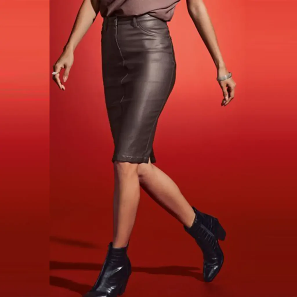 🟣 دامن میدی طرح چرم قهوه ای نکست NEXT 👀