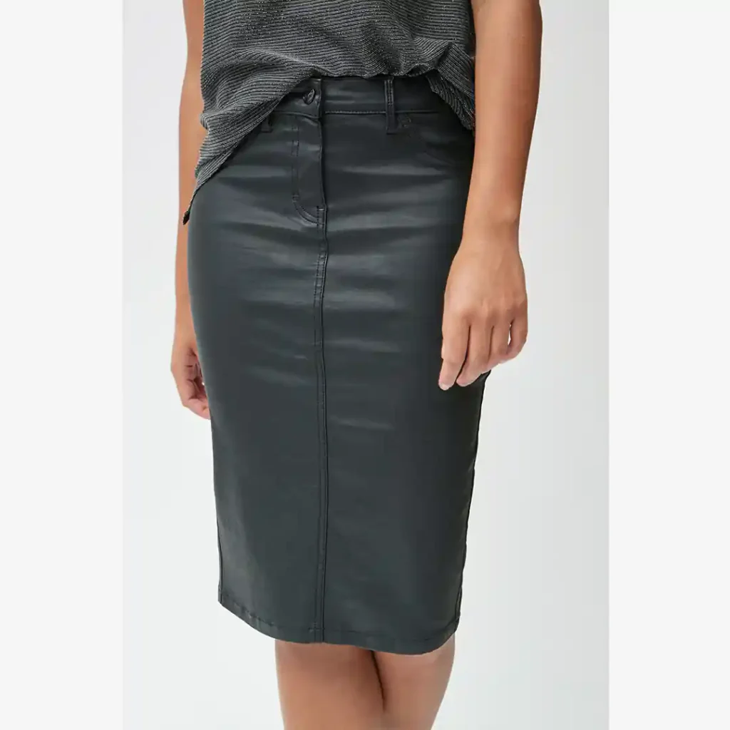 🟣 دامن میدی جین کشی طرح چرم مشکی نکست NEXT 👀