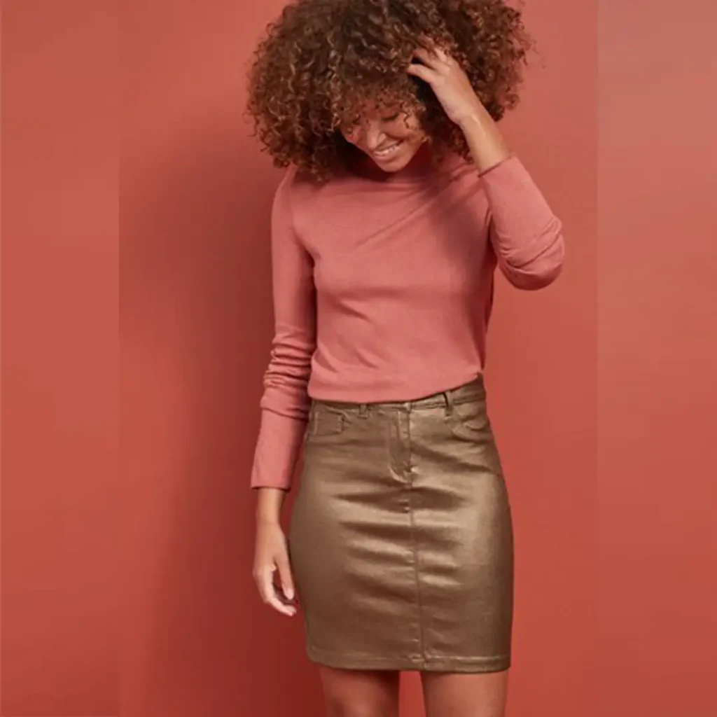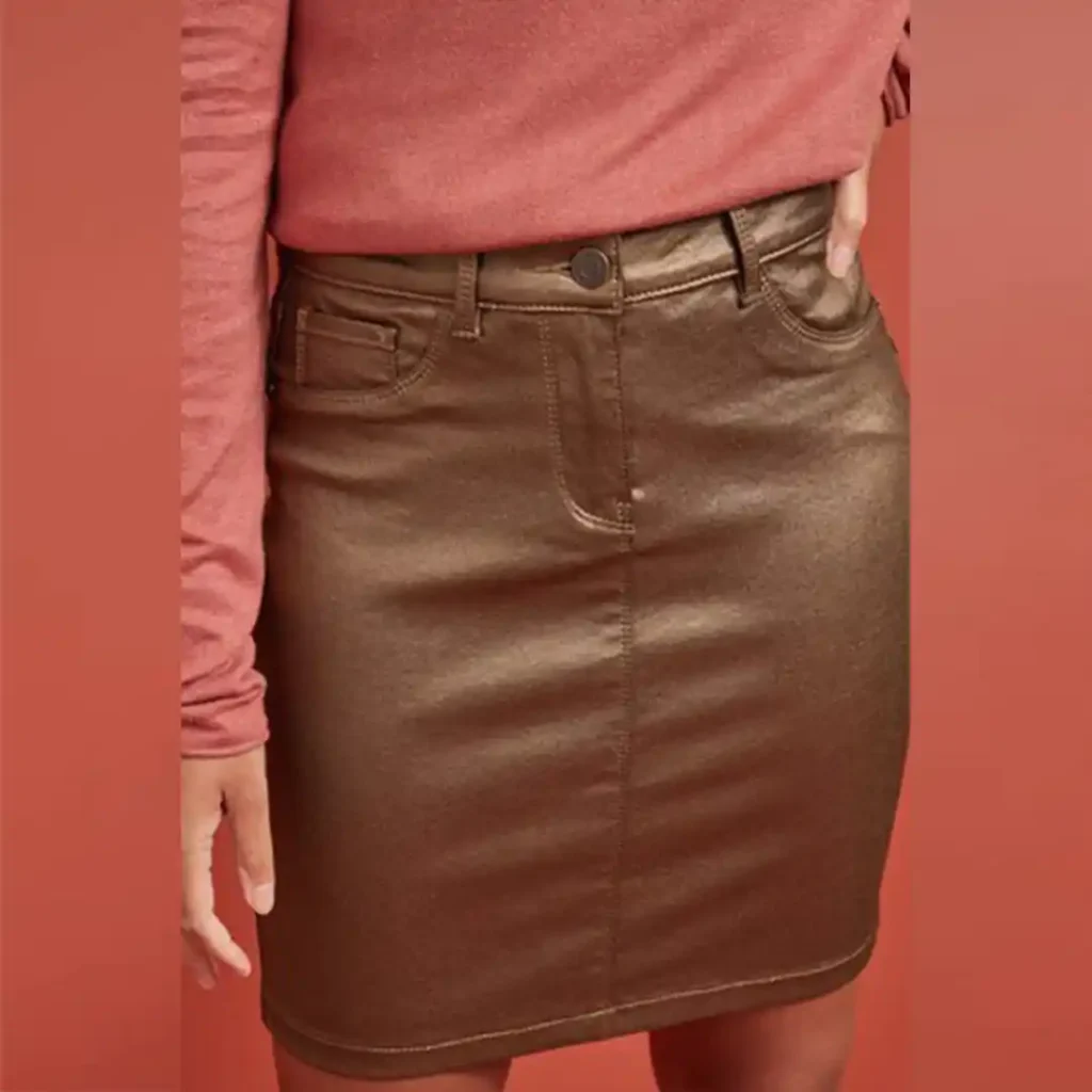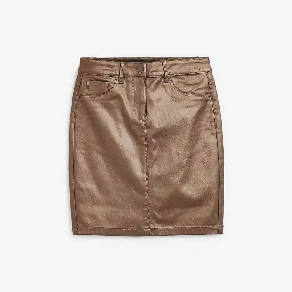 🟣 دامن کوتاه جین کشی طرح چرم برنزی براق نکست NEXT 👀