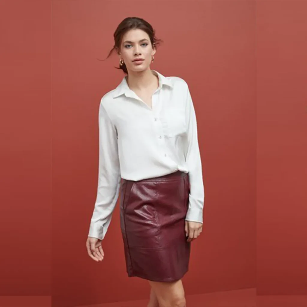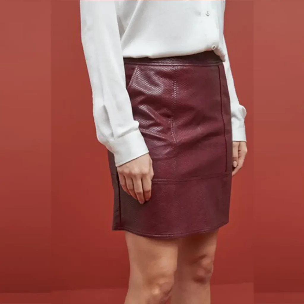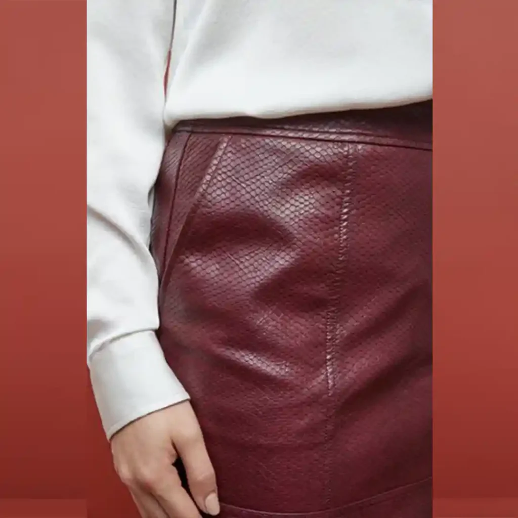 🟣 دامن کوتاه طرح چرم پوست ماری زرشکی نکست NEXT 👀